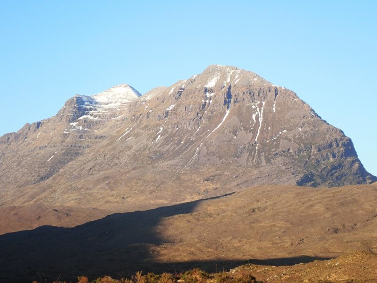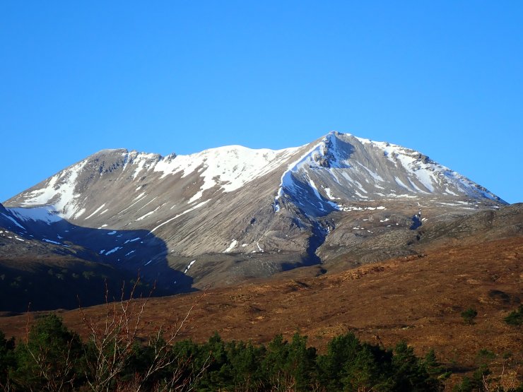 A closer view of Sgurr Mor (986m) on Beinn Alligin. If you look really closely you can see a ribbon of snow on the summit edge.