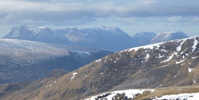 Looking across to the Torridon hills of Beinn Eighe, Ruadh-stac Beag and Meall a’ Ghiuthais.