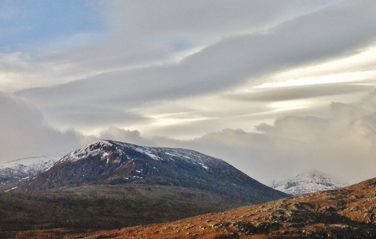 (Above) I knew it would be very windy in the mountains from the offset. The lenticular and wave bar clouds over the Beinn Dearg mountains were a sure sign.