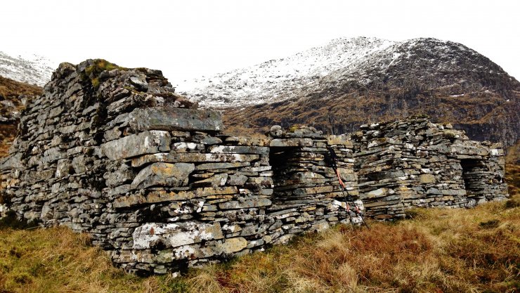 Hi Keith. Thanks for your comment. I agree regarding the schist blocks that also fracture into slabs that can be used for roofing material. The stalker’s path that the ruin overlooks takes a rising traverse on the north shore of Loch a’ Mhadaidh to continue under the east aspects of Meall a’ Chrasgaidh up to the col between it and Carn na Criche. It is becoming less obvious over the years as it is little used and becoming overgrown with grass and heather. There is also a vague path that follows a low angled rake out of the Sgurr Mor coire onto the ridge between it and BLMF, joining the main path near the shelter I mentioned. Ponies are rarely used these days, substituted with Argo ATV’s.