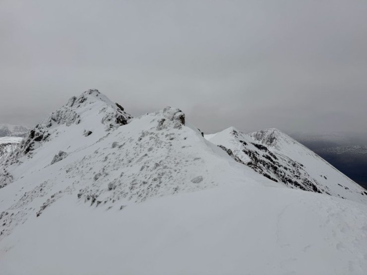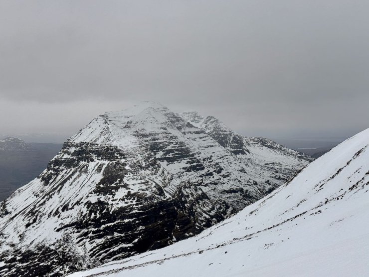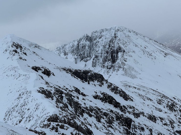 Todays observations were from Spidean Coire nan Clach, Beinn Eighe. Approaching through Coire an Laoigh, there was patchy snow cover from around 400m with more significant cover from around 550 metres. Snow was firm at most elevations becoming a little softer later in the day. Some localised pockets of moderately bonded windslab remained at the highest elevations on the North side of the ridge, however these were consolidating during the day, as the freezing level rose close to the higher summits in the area.