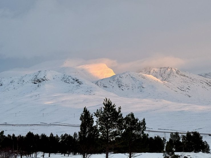 Sgurr Dubh at 782m on the South side of Glen Torridon. Drifting near the summit could be seen from the roadside this afternoon.