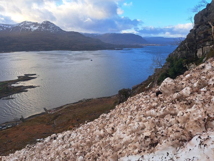 Debris from a wet snow avalanche on Liathach that probably happened yesterday (Sunday). It ran to an altitude of 100 metres above Torridon village.