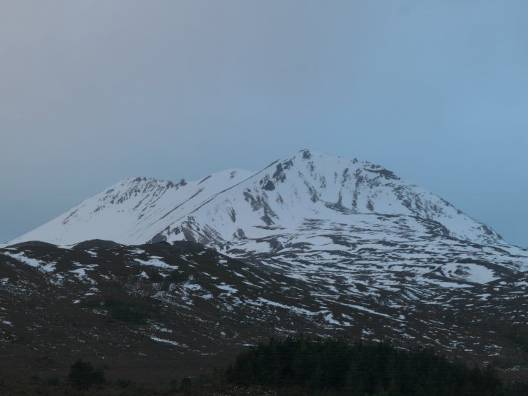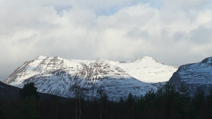 After some heavy overnight rain it was a mild and very windy day with a few showers which fell as snow only on the very highest summits. The loss of snow is very noticeable at low levels but the mountains remain mainly white.