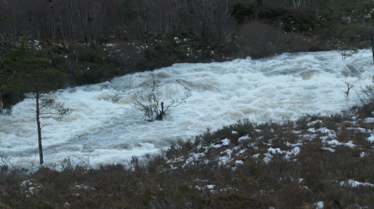 High water level from rain and snowmelt in the A’ Ghairbhe.