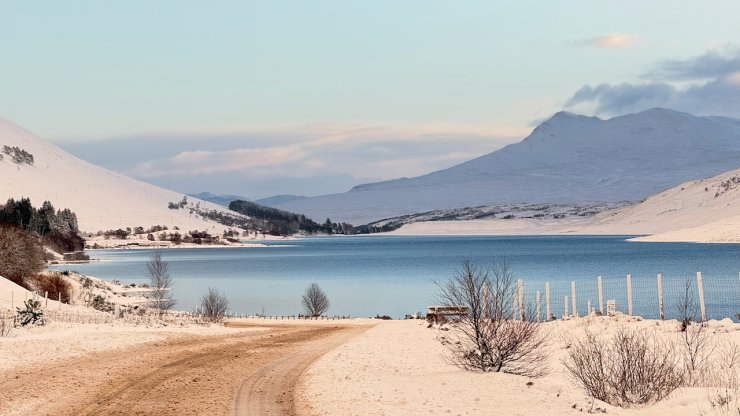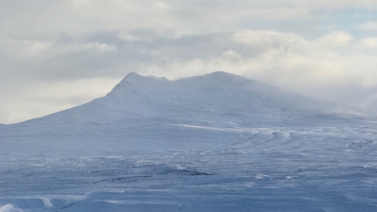 Continual Northerlies with sometimes heavy snowfall, has gradually built up the accumulations of snow from a dusting on the 1st January to significantly deeper accumulations three days later! This is noticeable away from the coastal mountains and into the more easterly hills such as the Fannichs. Generally SE to SW facing slopes have the greater accumulations with any aspects that face North being mostly wind scoured. Travelling on foot is becoming very tiring in the deep snow, often waist deep in places at 350 metres elevation so progress is extremely slow. As shown in the photos below on Fionn Bhein ski tourers taking advantage of the snowy conditions.