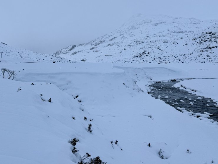 It was a somewhat milder day, with the freezing level gradually rising to around 600m. Though it was a rather indistinct ‘level’ with what seemed to be cooler lower layers at times in the atmosphere. Rain fell in the glens, rather than snow as has been the case for several days, and below 400 metres the snow is stabilising in these milder conditions. At higher levels unstable windslab was deposited in wind sheltered areas, today mainly on North through East to South-East aspects.