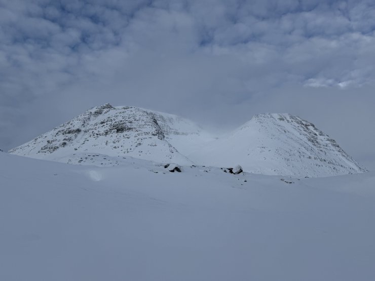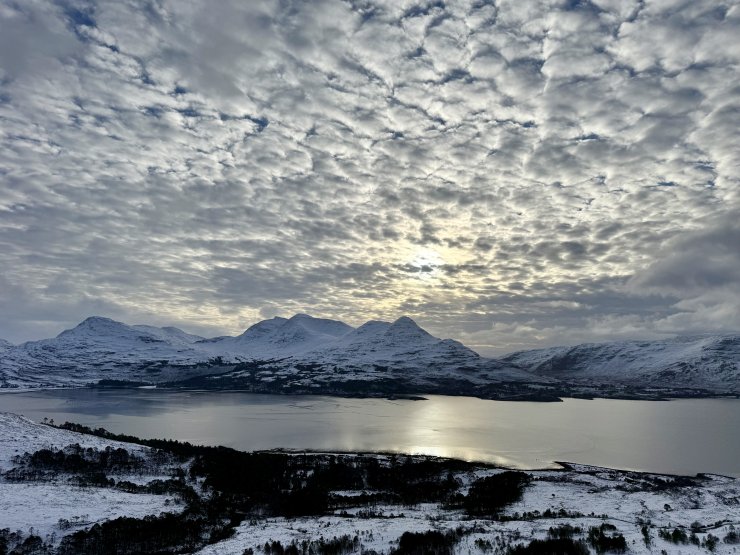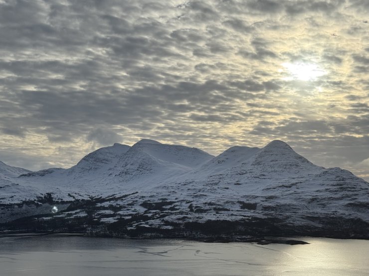 Overnight there was more snowfall above around 200m which continued into the morning, giving me a distinctly white drive across to Torridon from Kinlochewe. Car parks are still covered in deep snow with their entrances having a deeper bank of snow from the excellent road clearance work of the council snow ploughs.