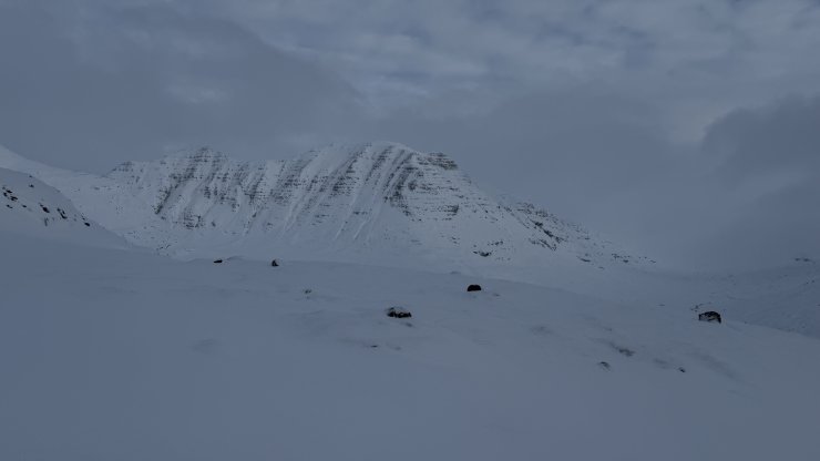 Further west it was brighter which gave me some excellent views and lighting. Knee deep snow, with frequent thigh deep patches, made ascent (and descent) hard work.