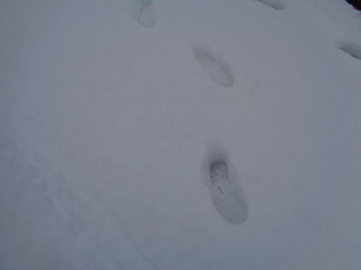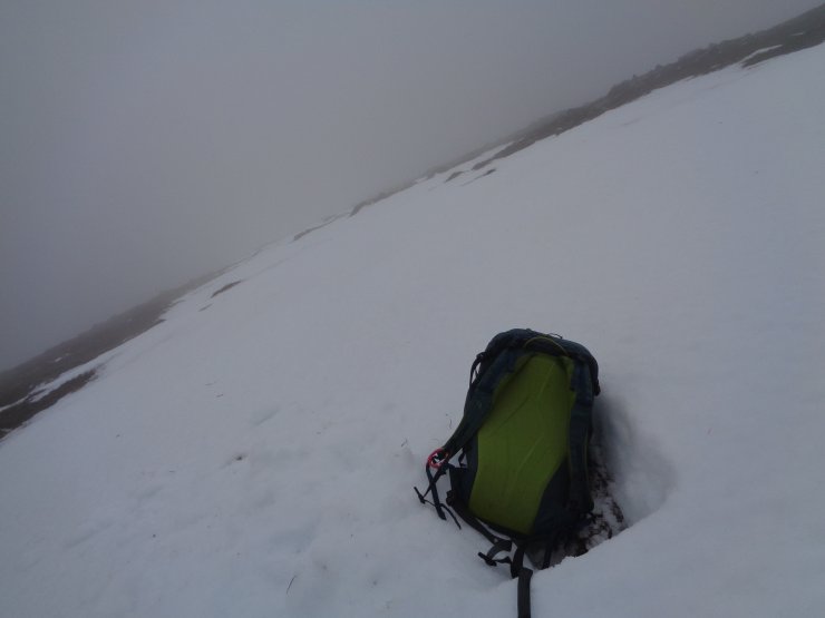 Old, firm consolidated snow at 650m. NE aspect on Beinn Liath Bheag. At this elevation, the snow is patchy.