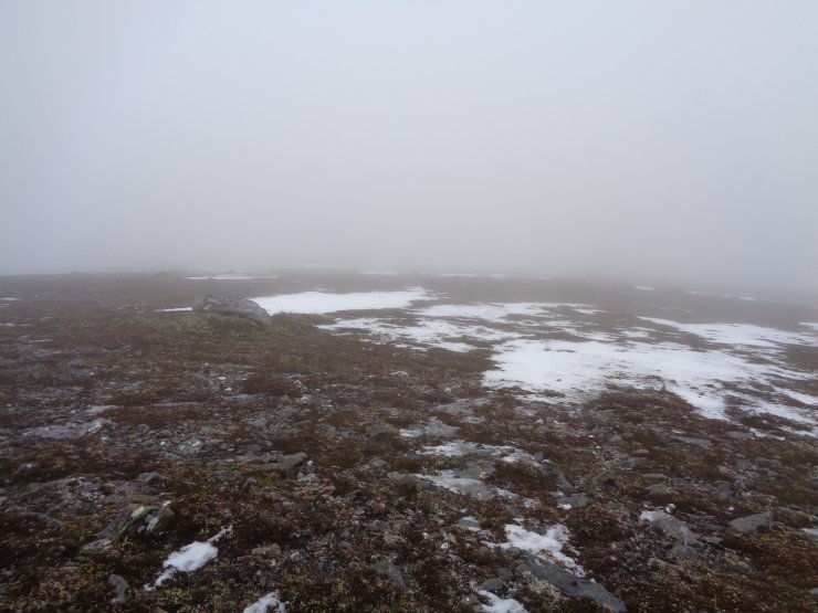 Fresh, moist, overnight snow diminishing on the summit plateau of Beinn Liath Bheag (665m)