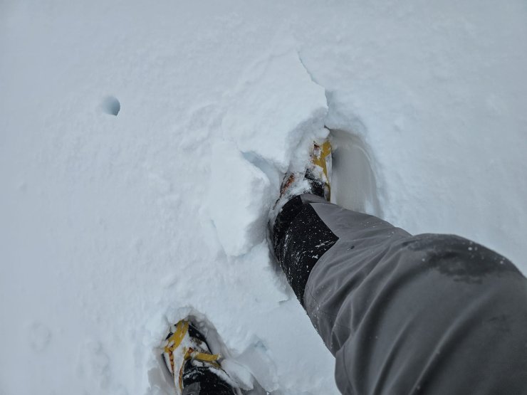 Slab already forming at around 700 metres with persistent snow and redistribution occurring. Significant amounts building through the morning after this picture.