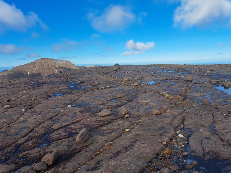 The flat rocky summit of Beinn a’ Chearcaill, a good viewpoint for the Torridon area.