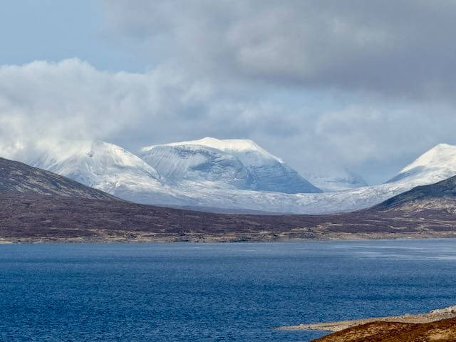 Looking across Loch Fannich to Beinn Eighe, from left to right, Creag Dubh, Ruadh-Stac Beag, and Ruadh-Stac Mor