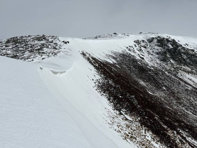 A small cornice around the corrie rim on Meall Gorm, however very little build up of fresh snow below.